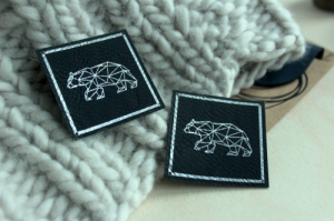 Duża metka z pięknym motywem niedźwiedzicy sprawdzi się przyszywana ręcznie do czapek, kominów czy toreb. Dzięki ramce bocznej ładnie wygląda także przyszyta maszyną.