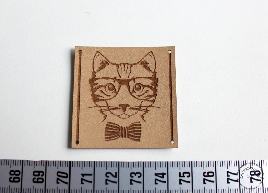 Duża metka z modnym kotem, sprawdzi się przyszywana ręcznie do czapek, kominów czy toreb. Dzięki ramce bocznej ładnie wygląda także przyszyta maszyną.