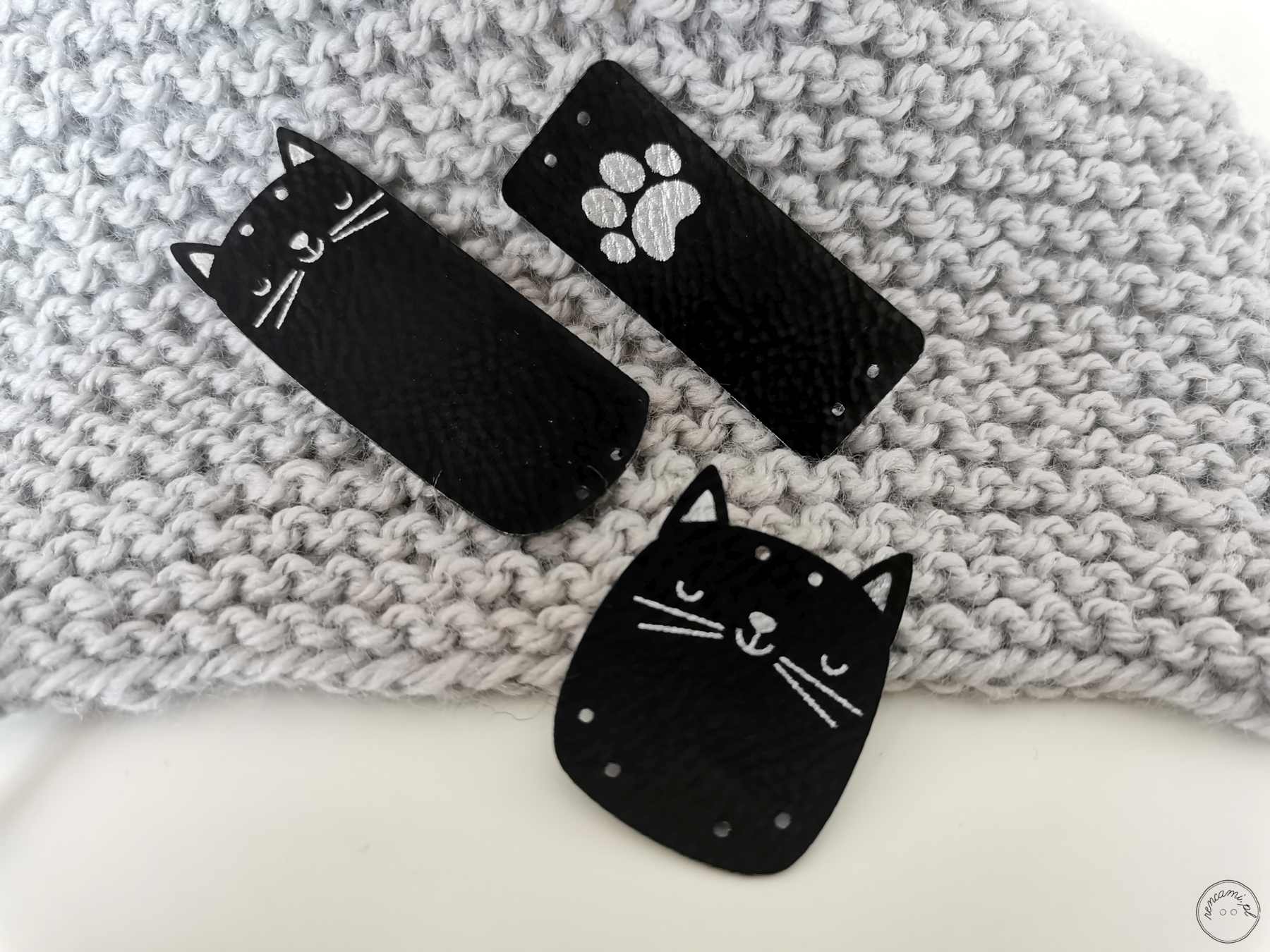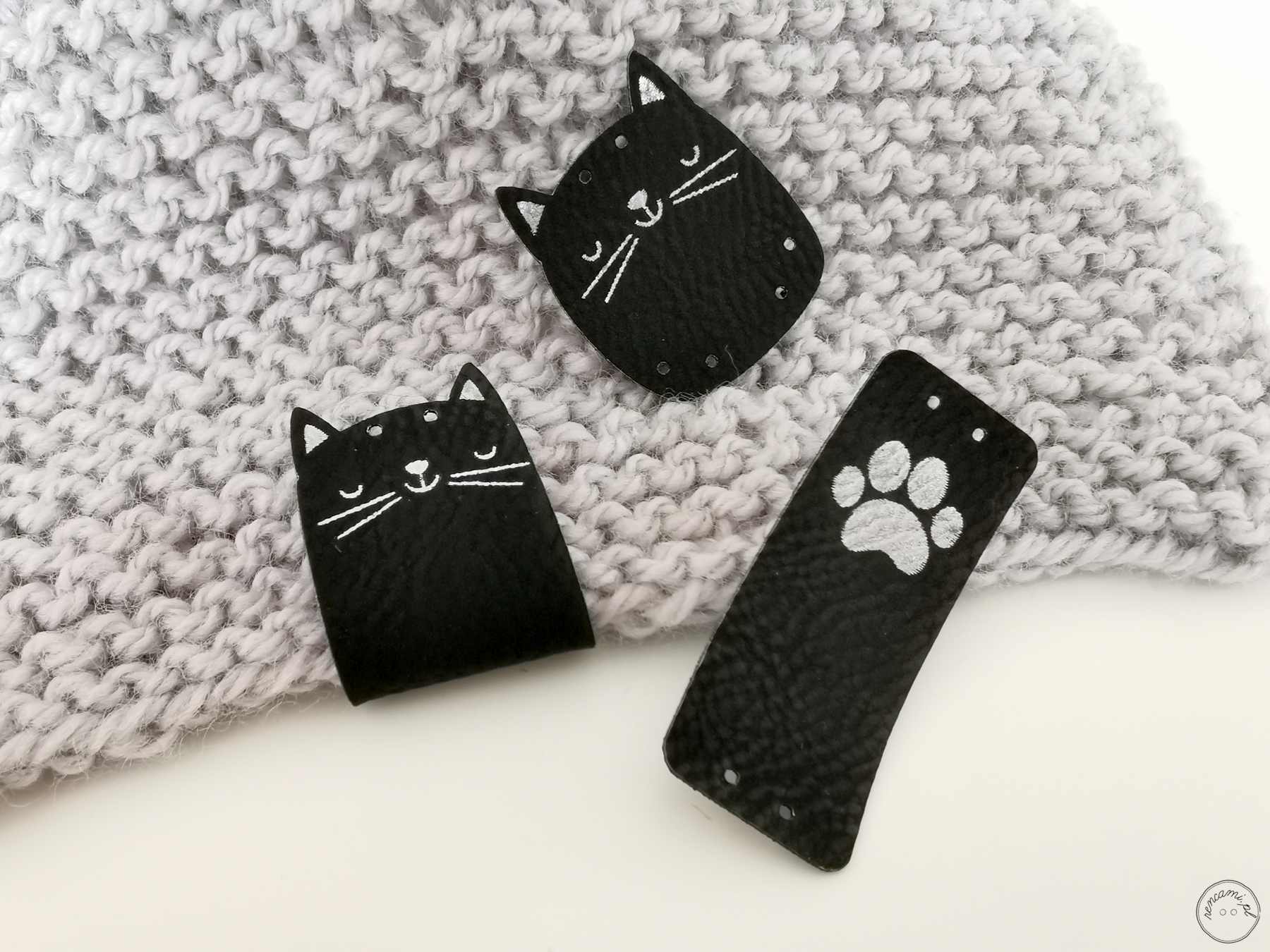 Zestaw 3 metek kotek czarny ink. Czarna ekoskóra + srebrny grawer.