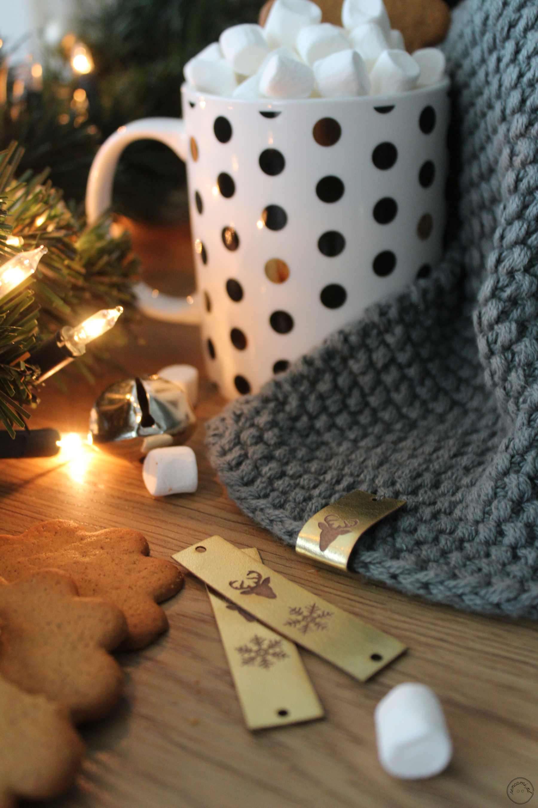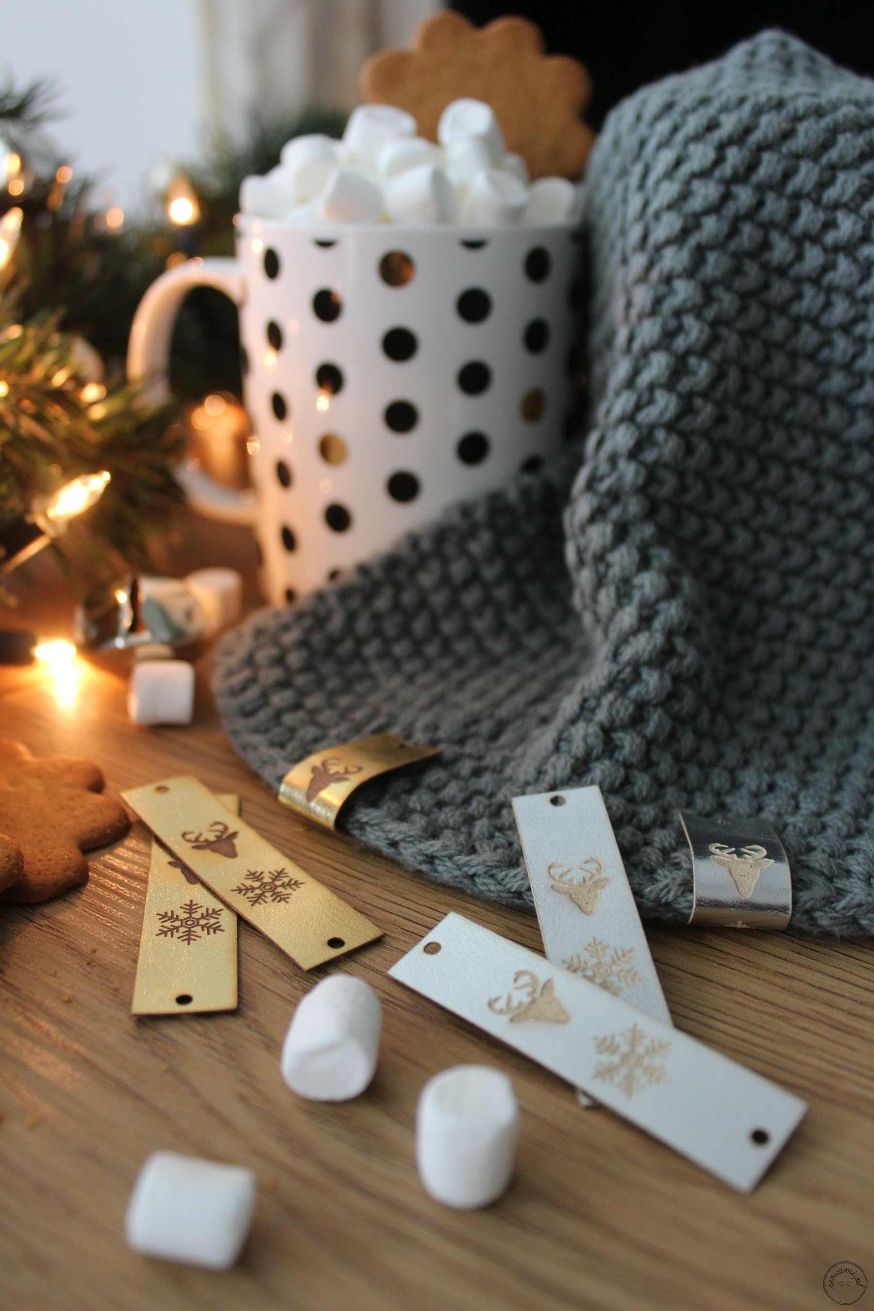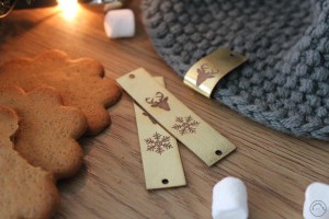Metka z ekoskóry metalicznej śnieżynka/renifer złota ciemna