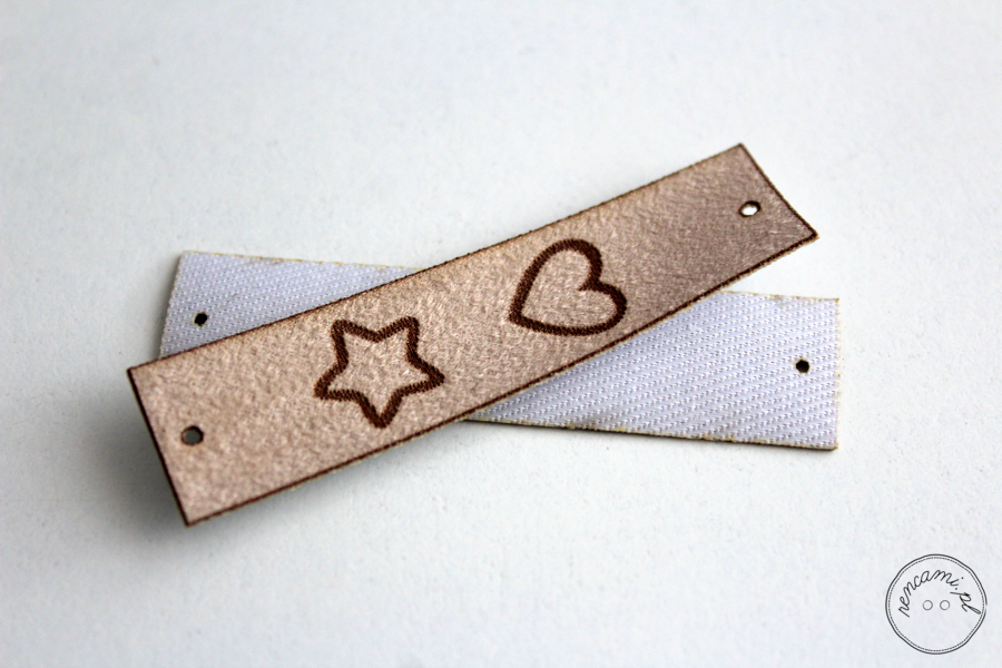 Tylko u nas! Metka z wdzięcznym motywem gwiazdki z jednej, a serca z drugiej strony. Daje wiele możliwości zastosowań: naszycie ręczne przez pojedynczy otworek, wszycie w szew bądź naszycie ręczne po odcięciu górnej części z otworkiem. A to wszystko na dwa sposoby w zależności czy wybierasz gwiazdkę czy serce.