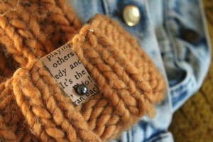 Metka zakładana od góry. Idealna na brzeg czapki, szalik, komin, torebkę lub kieszeń swetra.