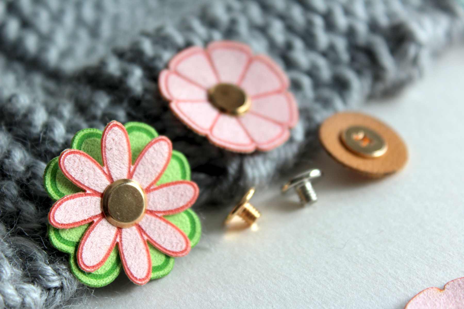 Nie musisz ich przyszywać - wystarczy wkręcić nit z kółeczkiem od spodu.