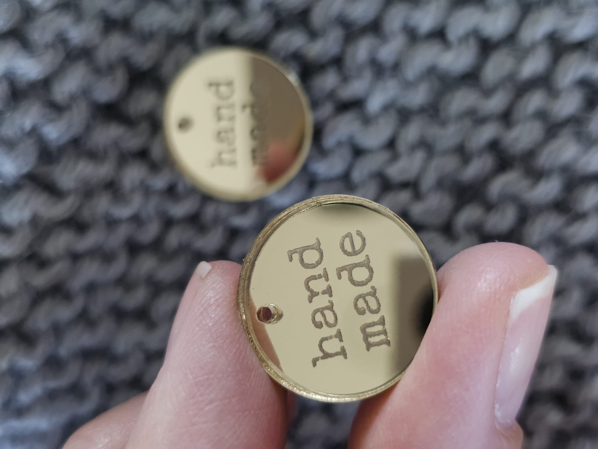 Zawieszka z plexi lustrzanego z 1 otworkiem i tekstem.